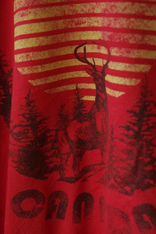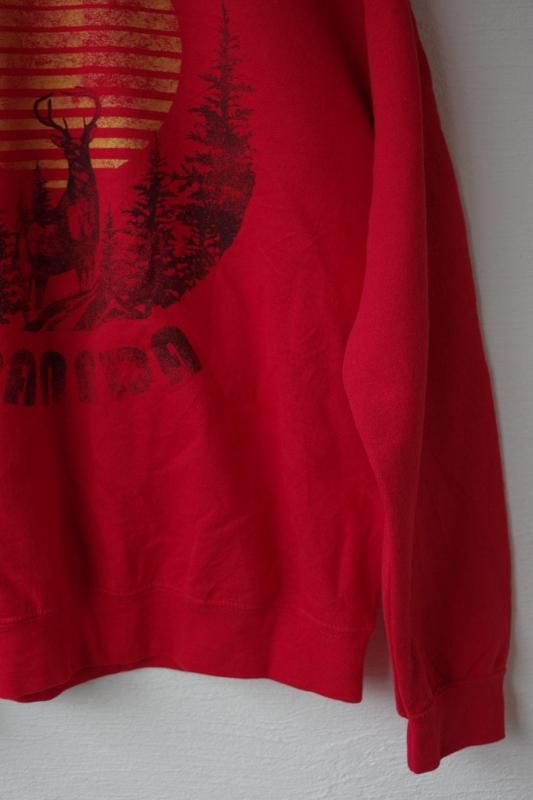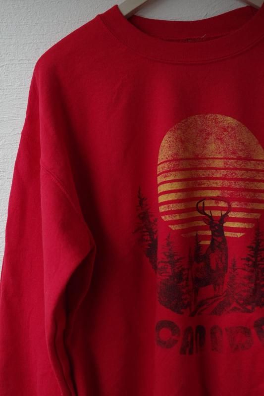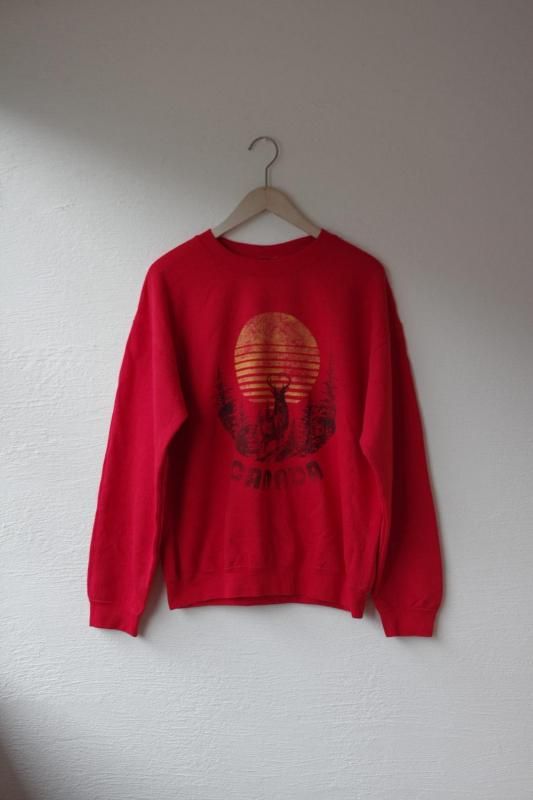 夕日を背にシカが勇ましく立つ姿がかっこいいプリントのスウェットシャツ。