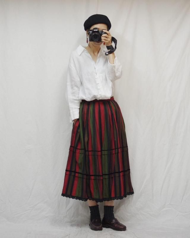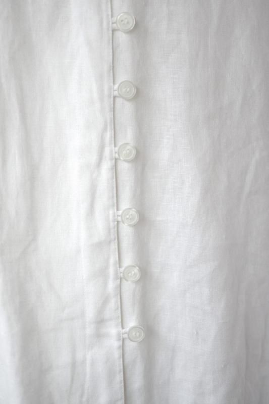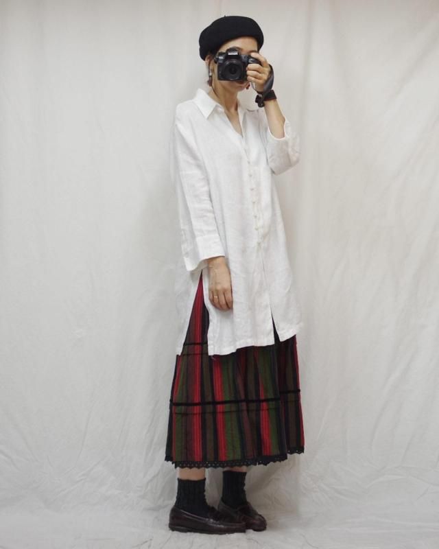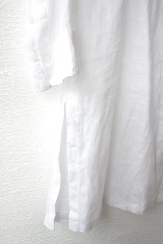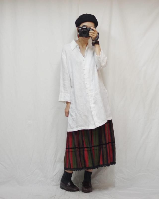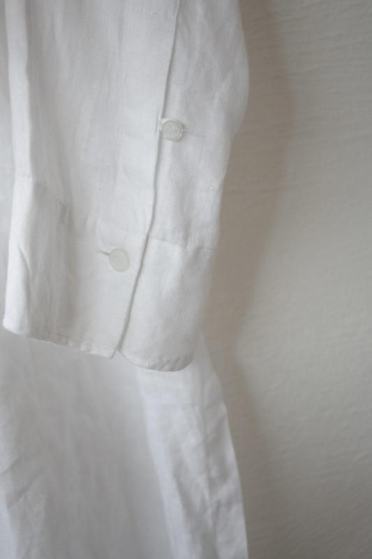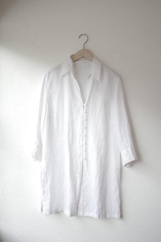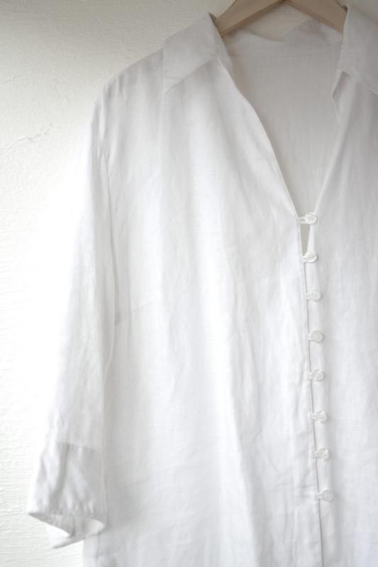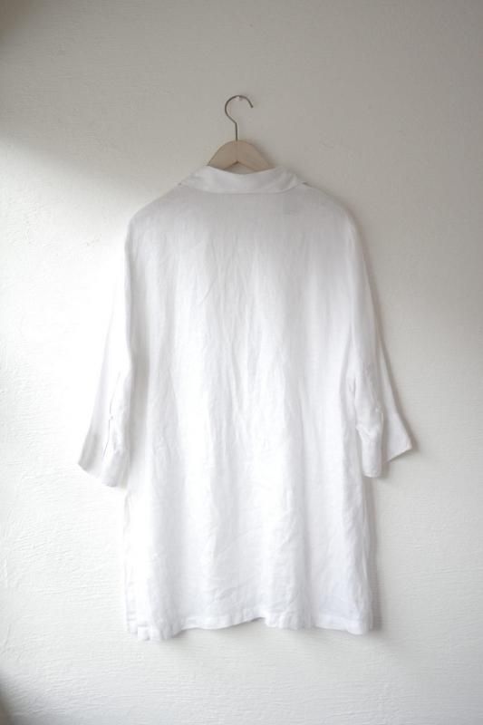 ゆったりしたホワイトのシャツ。素材はリネンだと思われます。