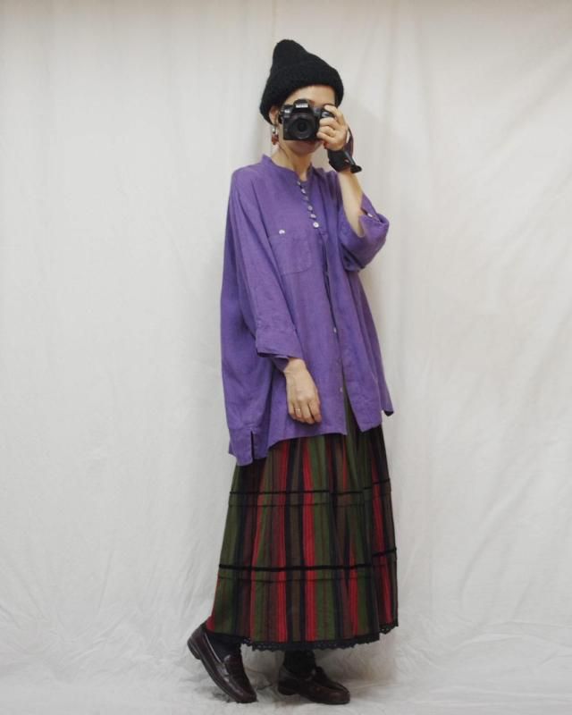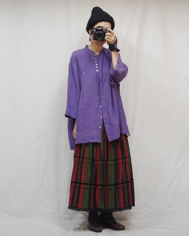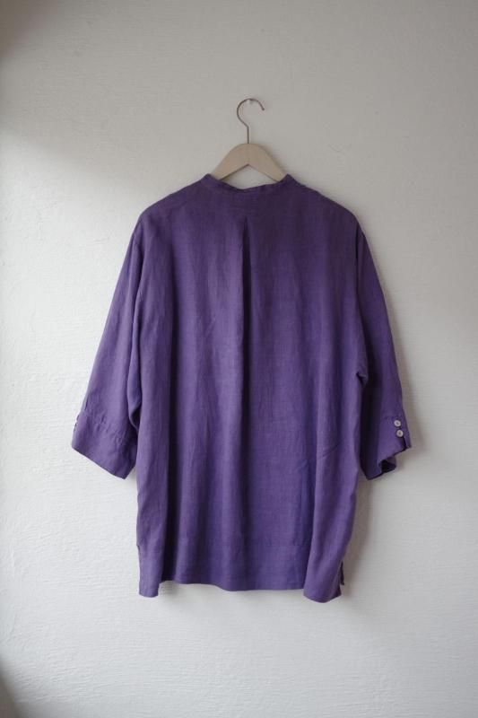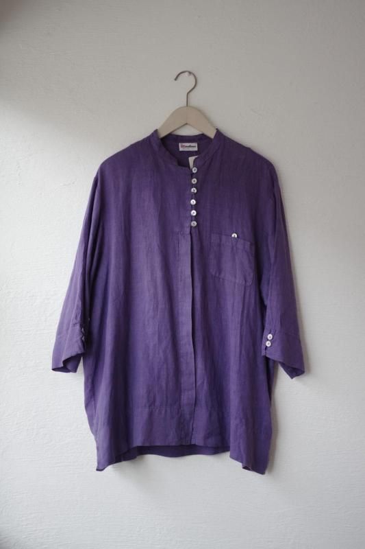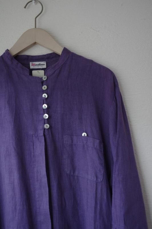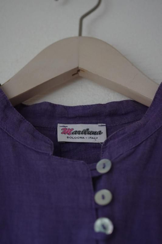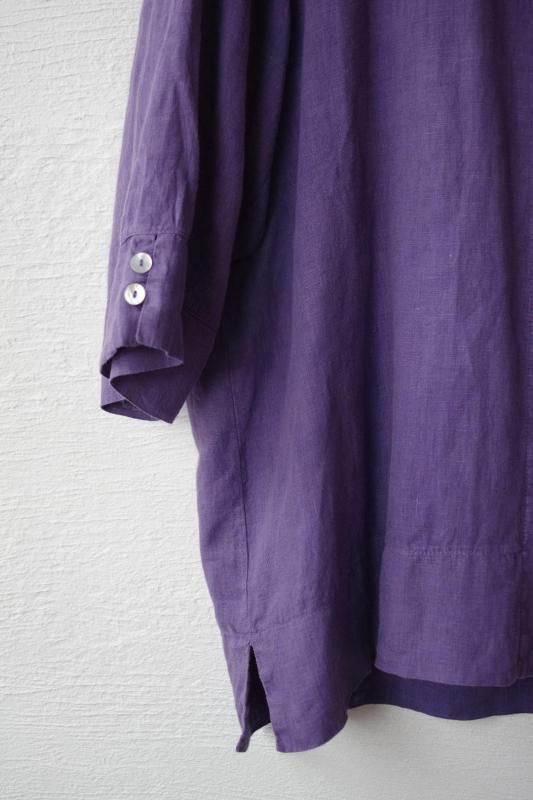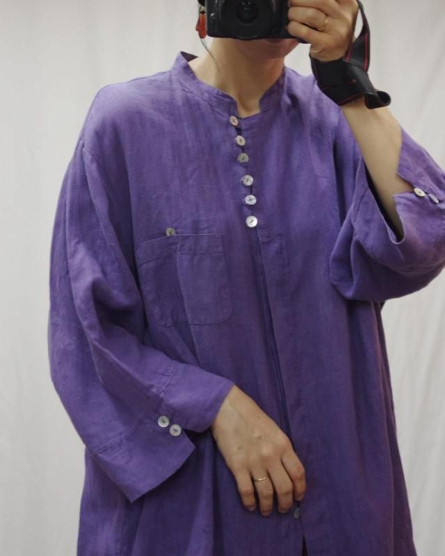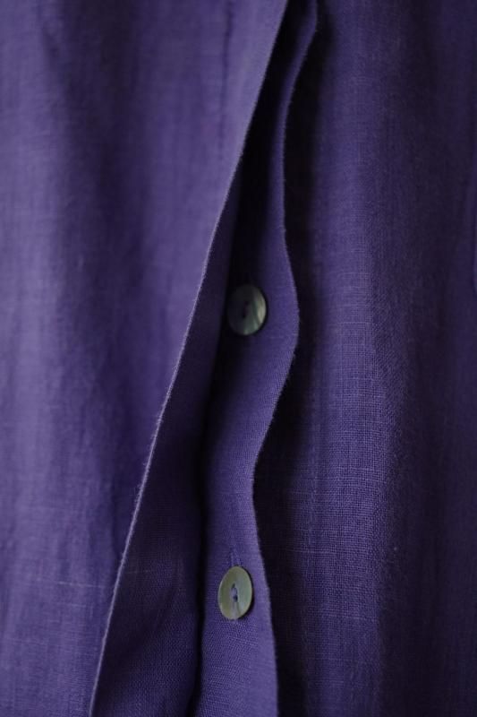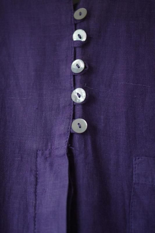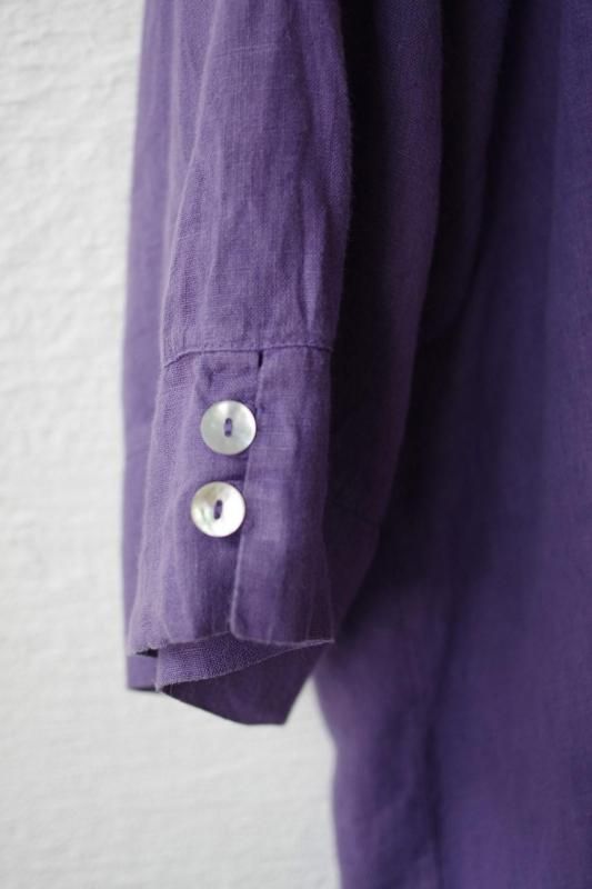パープルのリネン地に艶めくシェルボタンもとても素敵です。