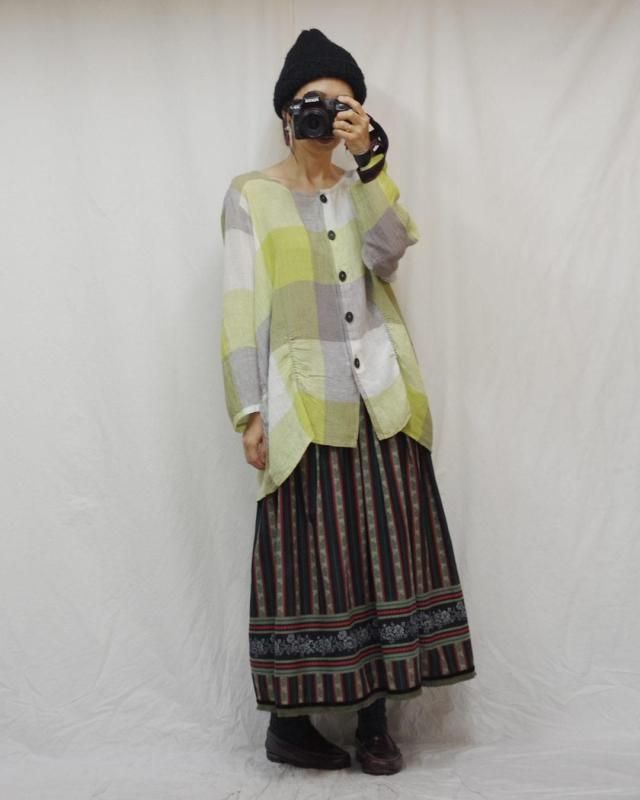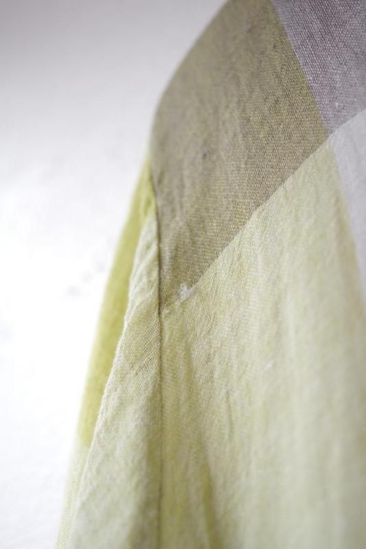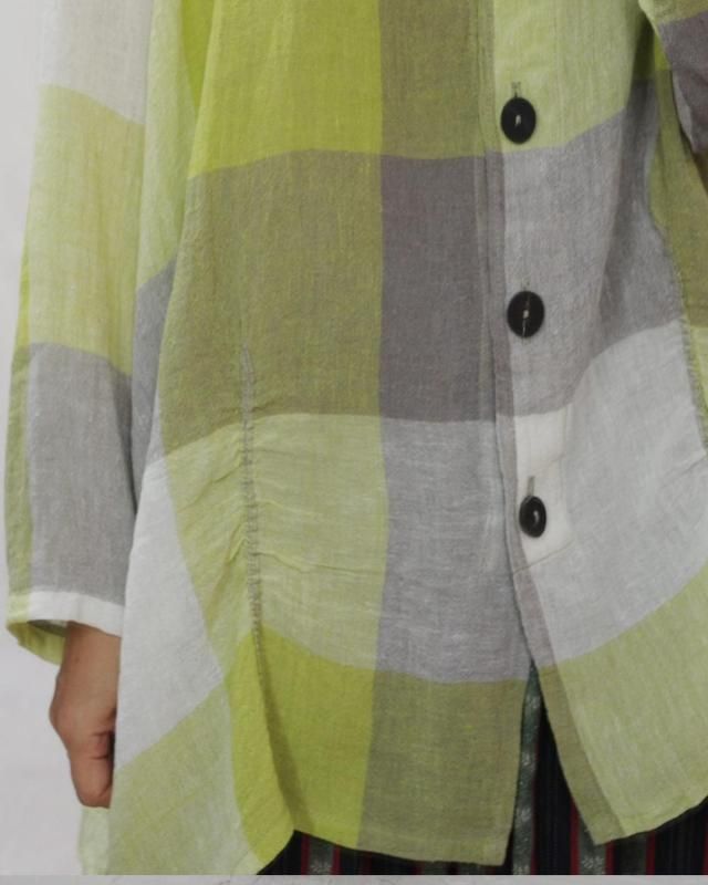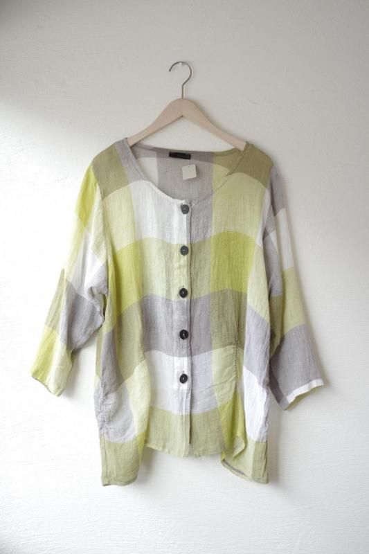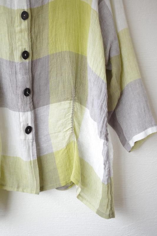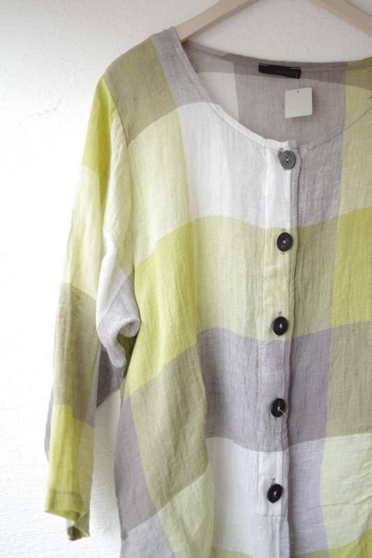 ドイツ製の黄緑とホワイトとグレーの大き目チェック柄のブラウス。