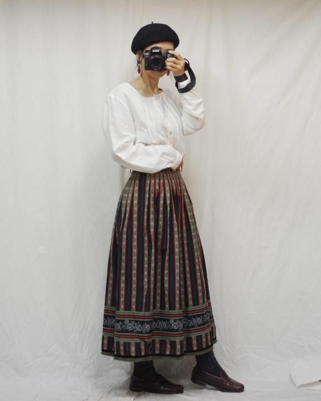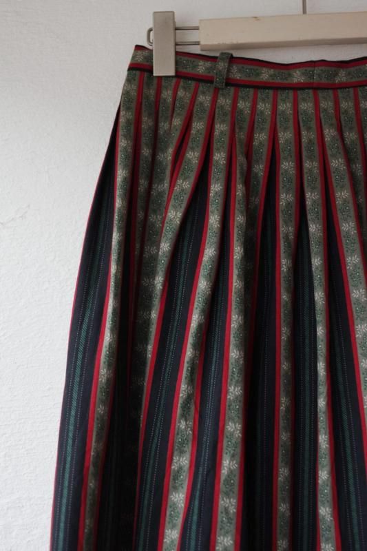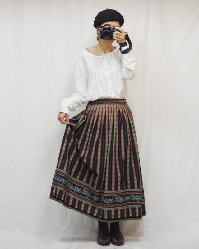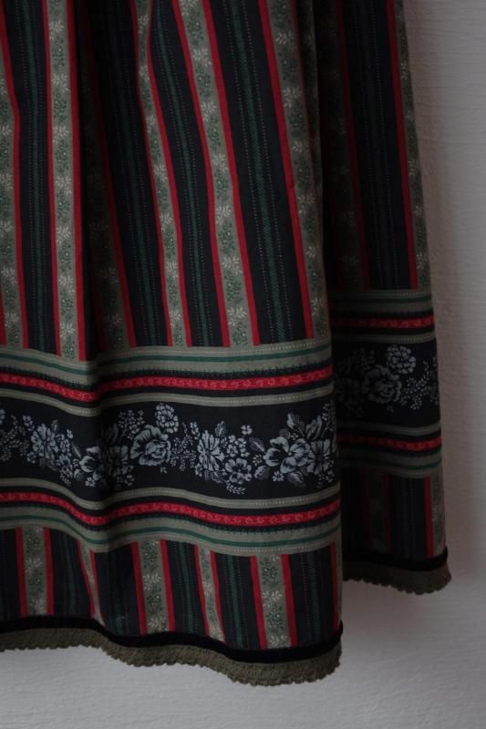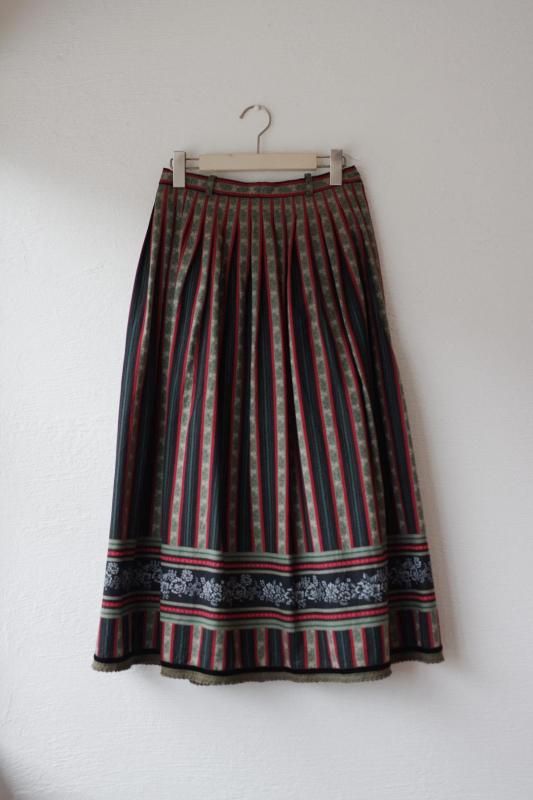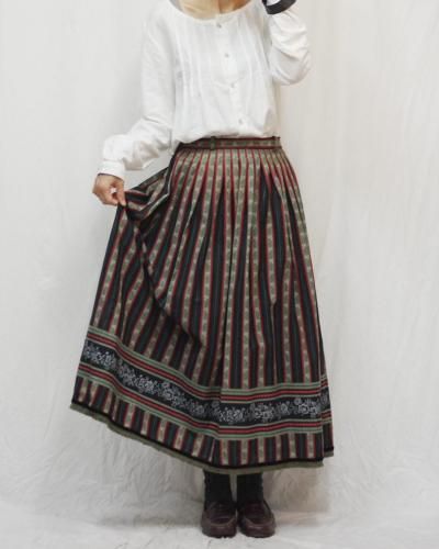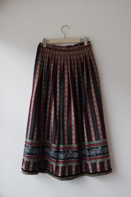 ウエストから裾にかけて広がるシルエット、シャーリングやレースが施された手の込んだ作りが特徴のチロル地方の伝統的なチロルスカート。
