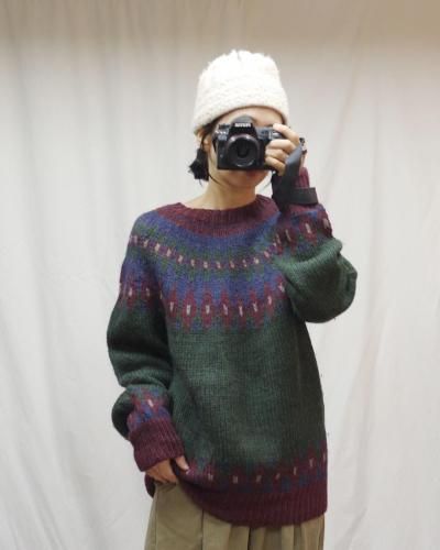 しっかりと太い毛糸で編まれたあたたかいニット。