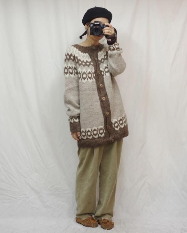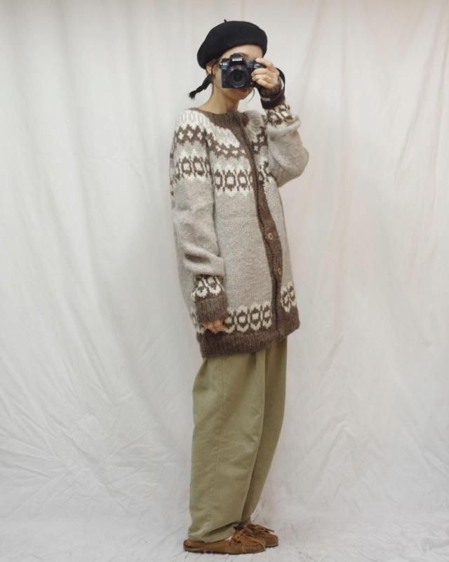 しっかりと太い毛糸で編まれたあたたかいニット。