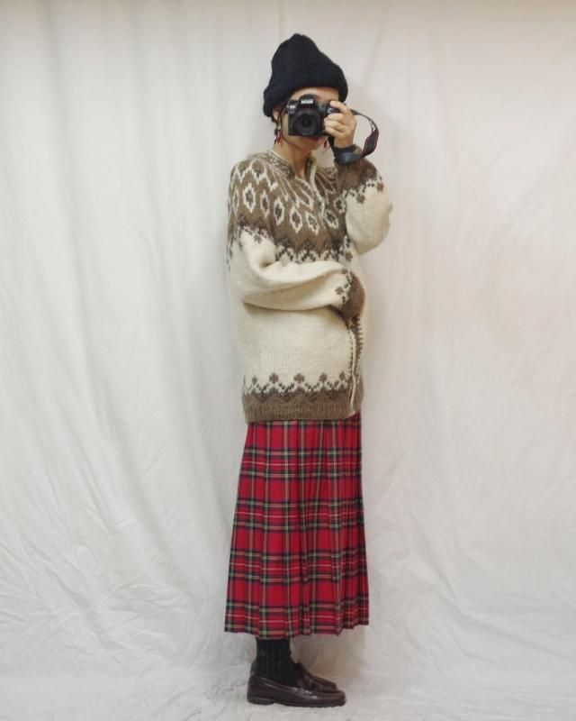 しっかりと太い毛糸で編まれたあたたかいニット。