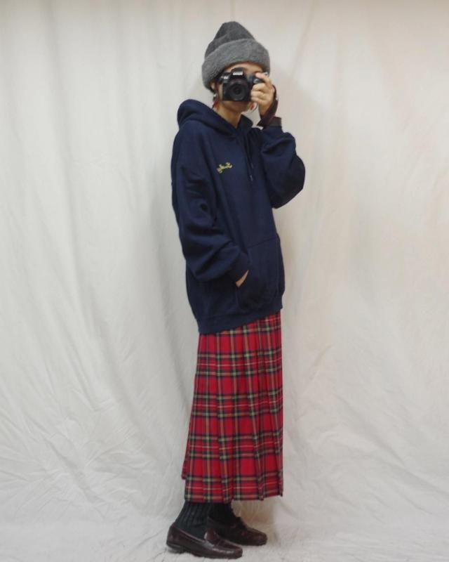 ボディーはネイビーのゆったりしたシルエット。