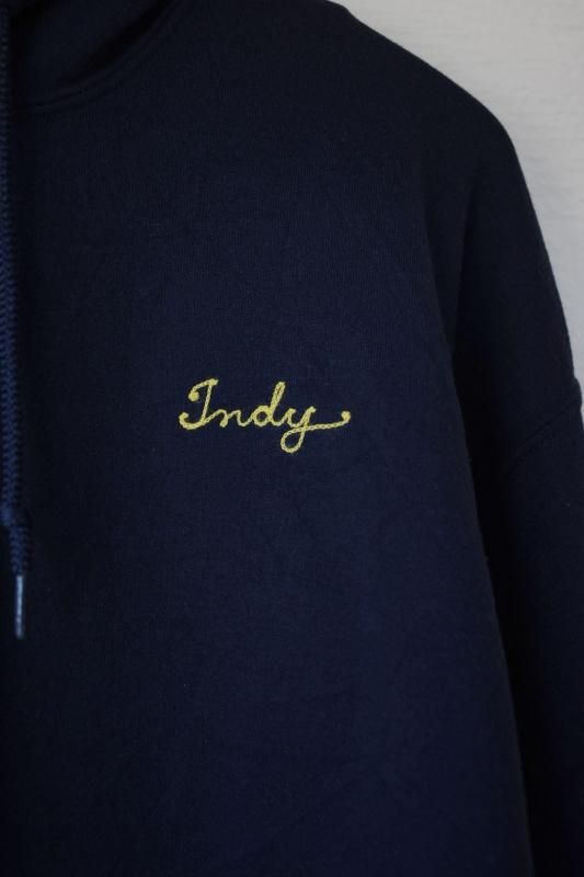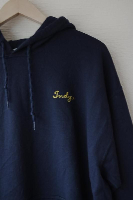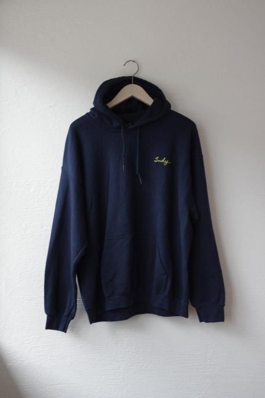 左胸にローマ字のネーム刺繍があしらわれたスウェットパーカ。