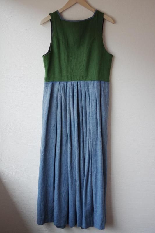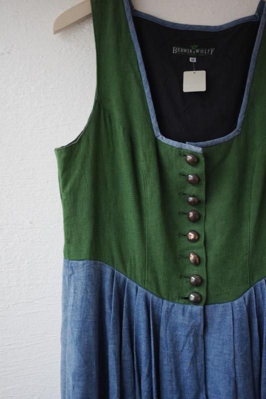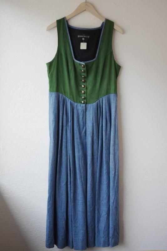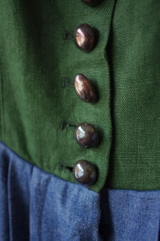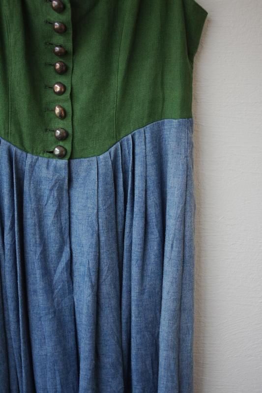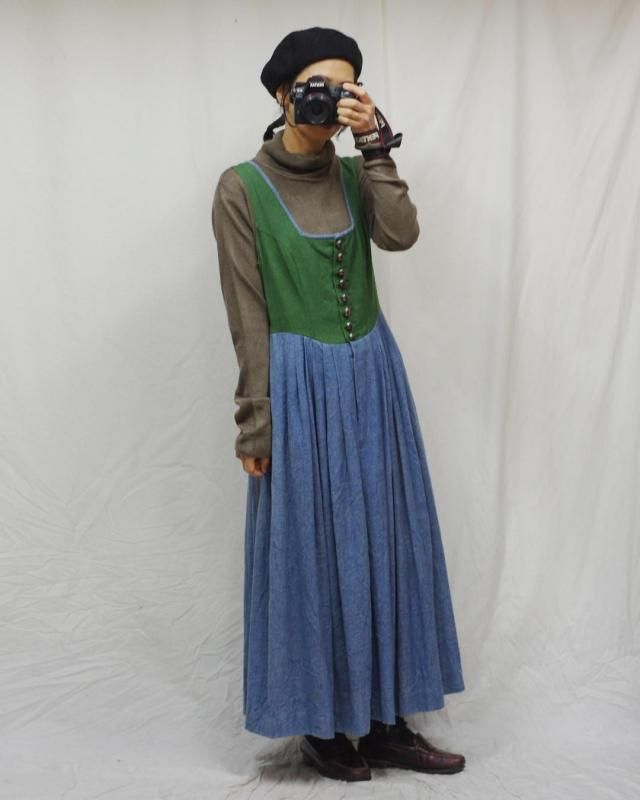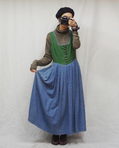 大きなボタンとバイカラーの切り替え、たっぷりのスカートも素敵な一枚。