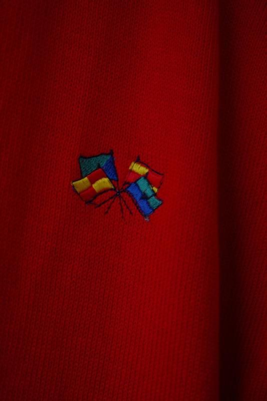 ポケットや袖口前立てにネイビーのラインがあしらわれ、胸のフラッグの刺繍もまたポイントで、スポーティーな一枚です。