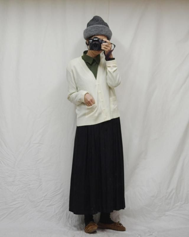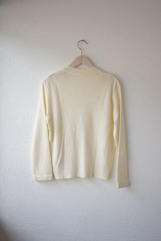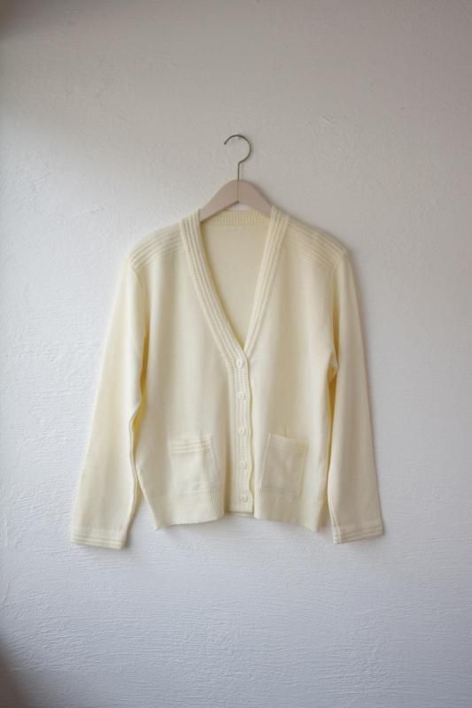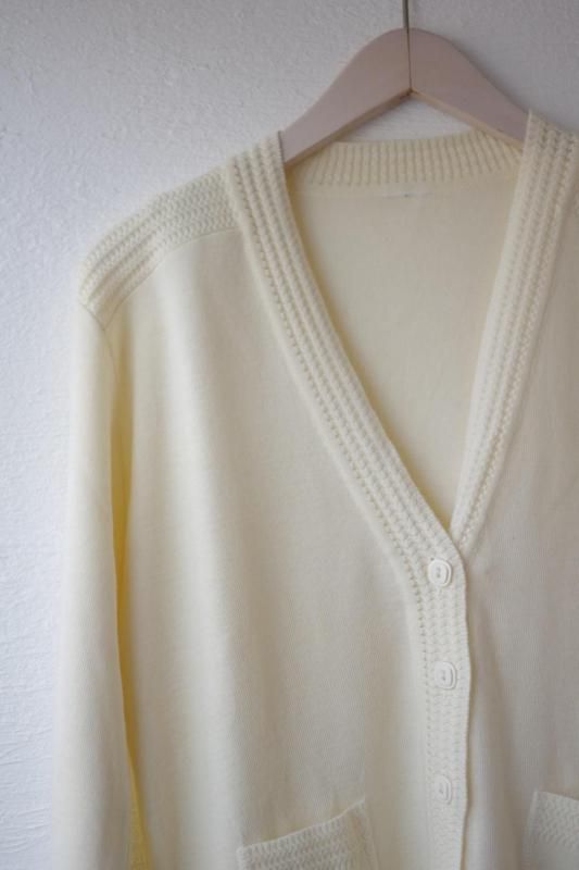 オフホワイトのカーディガン。