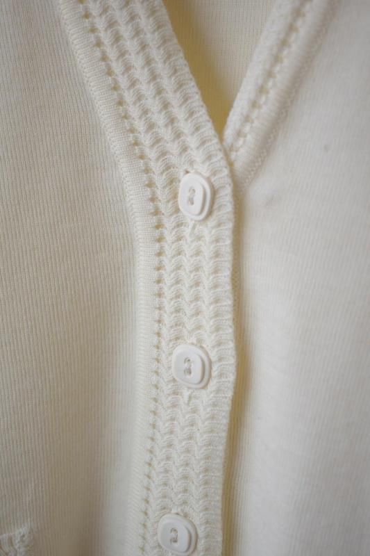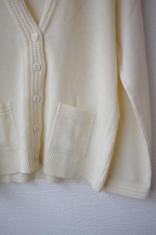 オフホワイトの編み柄カーディガン