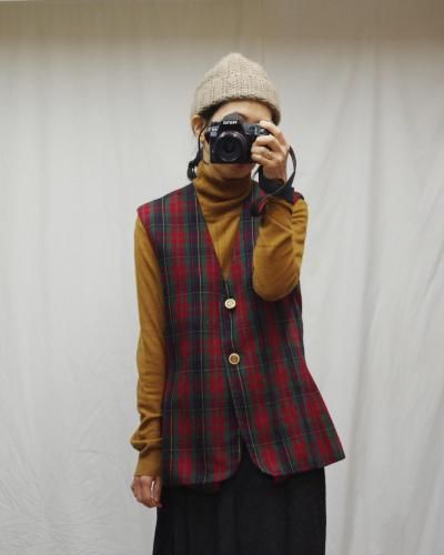 タートルニットに合わせたり、シャツに合わせたり、レイヤードをお楽しみいただけるベスト。