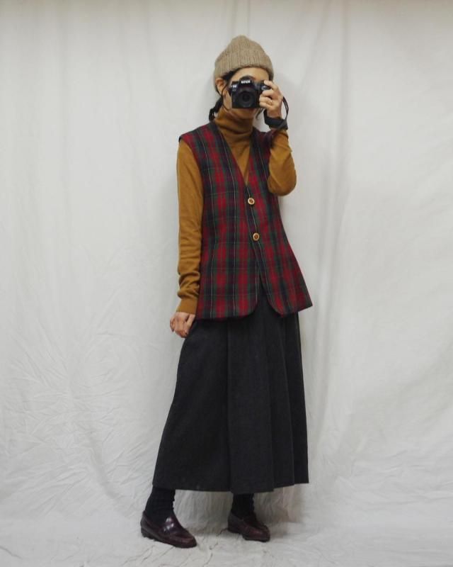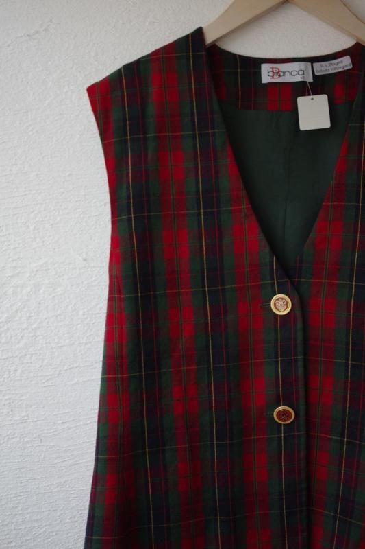 ホリデーシーズンにもお似合いな赤とグリーンのタータンチェックの一枚。