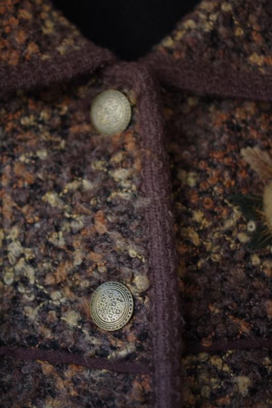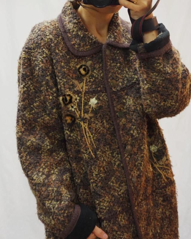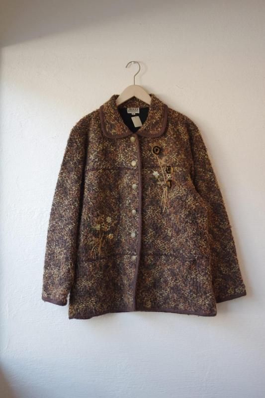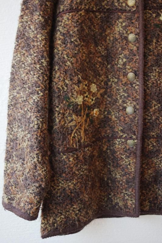 フロントや袖口にお花のし刺繍と装飾があしらわれ、ユーズドならではの面白さのあるジャケット。