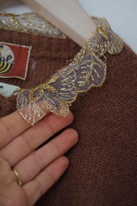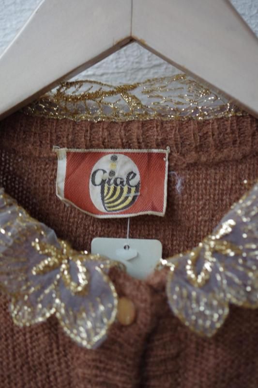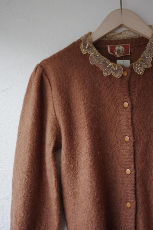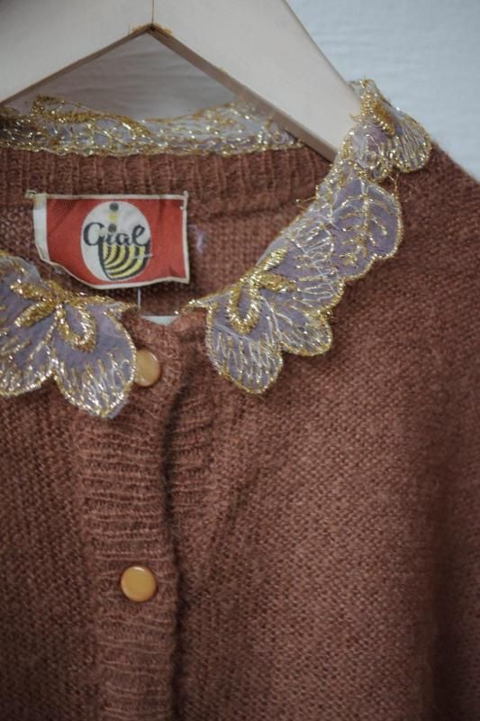 キラキラレース襟のカーディガン